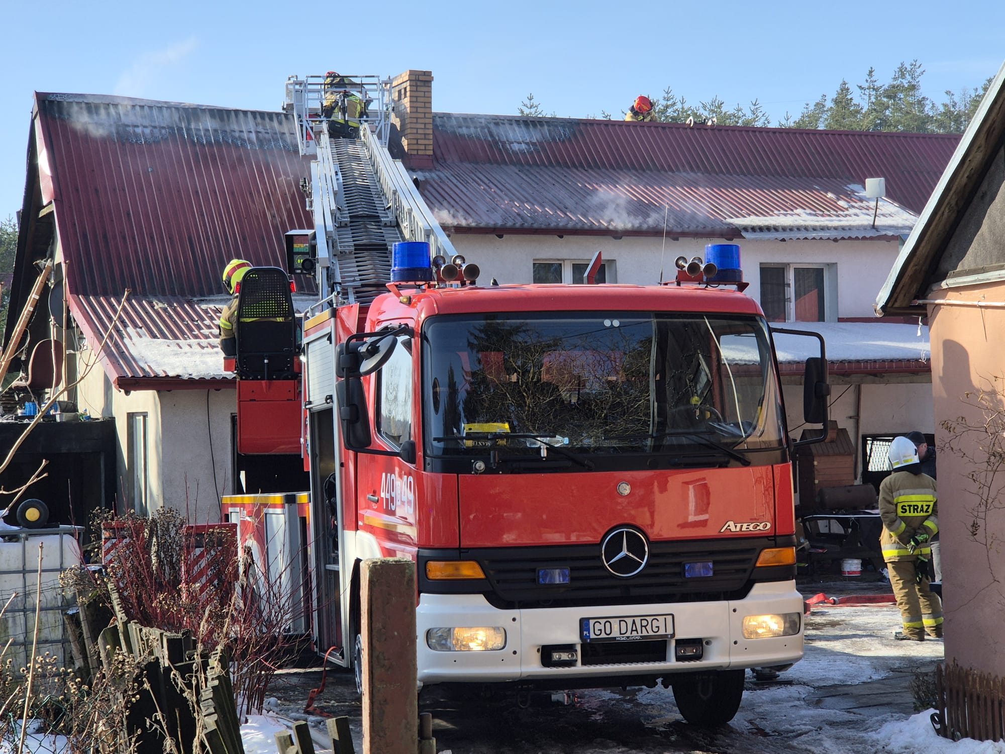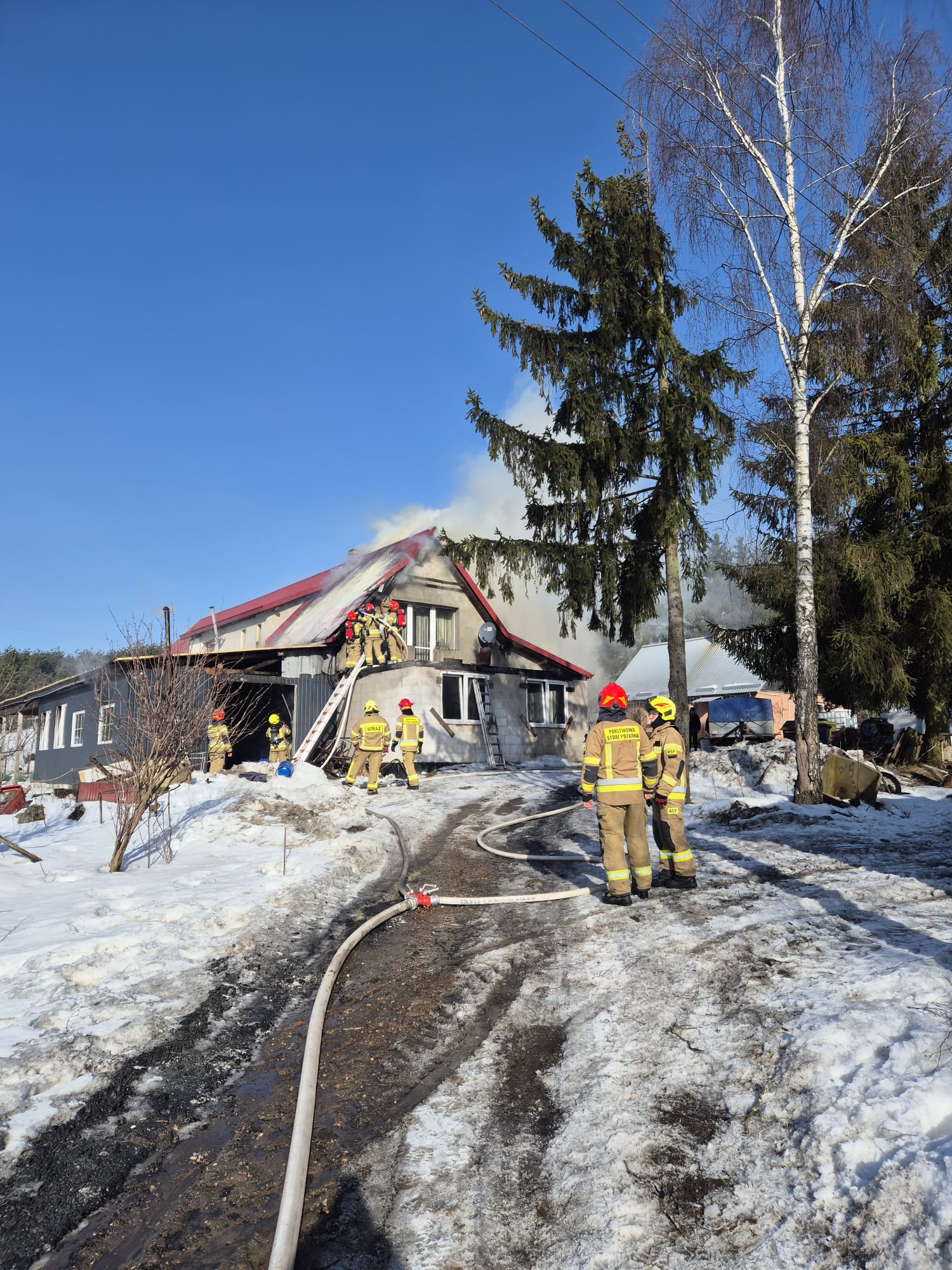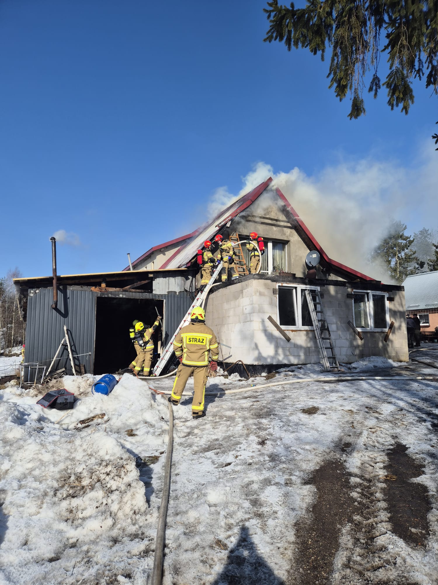 Tuż przed godziną 10:00 zostaliśmy zadysponowani do pożaru garażu w miejscowości Egiertowo. Po dotarciu na miejsce zdarzenia zastaliśmy rozwinięty pożar, który objął już budynek mieszkalny jednorodzinny. Nasze działania polegały na zabezpieczeniu miejsca zdarzenia oraz ugaszeniu pożaru.